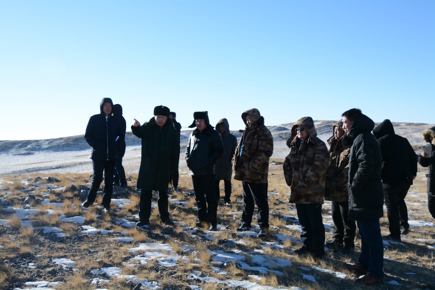 2018年1月19日,內(nèi)蒙古巴彥淖爾烏拉特中旗,以旗長(zhǎng)閆永春為首的內(nèi)蒙古自治區(qū)巴彥淖爾盟烏拉特中旗政府代表團(tuán)一行十二人來到大烏淀石墨礦進(jìn)行實(shí)地考察。當(dāng)?shù)貧鉁亓阆?0℃,天寒地凍,閆旗長(zhǎng)及代表團(tuán)的各位領(lǐng)導(dǎo)不懼寒風(fēng)詳細(xì)聽取了豐域烯碳顧巖董事長(zhǎng)對(duì)礦區(qū)及規(guī)劃的介紹。